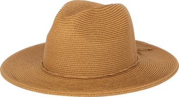Shade your face from the sun while adding a jaunty finish to your look with this strawlike fedora made water-resistant to protect you in the pool, too.