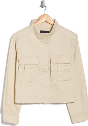 A stand collar and roomy chest pockets lend utilitarian swagger to a cotton-blend jacket that instantly modernizes your day-to--day looks.