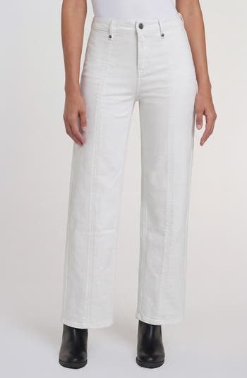 A laid-back mix of slim and straight, these mid-rise jeans are made from solid stretch-blend denim and finished with a center seam for a touch of utilitarian flair.