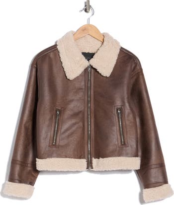 Faux-shearling trim and lining enhance the cozy feel of this smooth faux-leather jacket fashioned in a slouchy, cropped silhouette for easy layering.