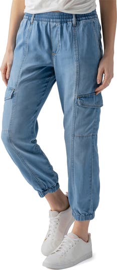 Jogger-style cuffs lend a casual air to this pair of lightweight chambray pants popped with on-trend cargo pockets for your essentials.