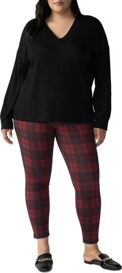 Pop some plaid into your leggings collection with this pants-styled pair that features functional and faux pockets.