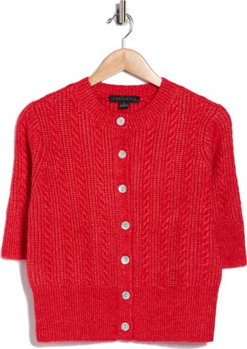 Classic cable stitching kicks up the cozy factor for a versatile short-sleeved cardigan you'll reach for on repeat.
