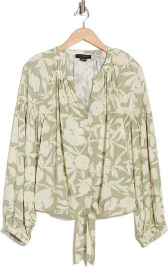 A buttoned top cut from lightweight fabric is covered in a pretty floral print and finished with a front tie to customize your 'fit.