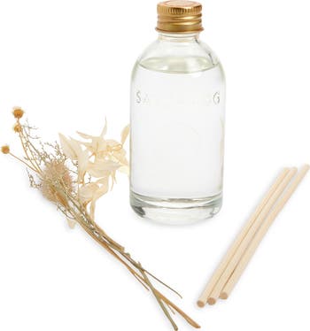 Elevate your atmosphere with this reed diffuser that blends an alluring aroma of inspired by the sun-kissed shores of southern California with a contemporary glass vessel accented by dried flowers.