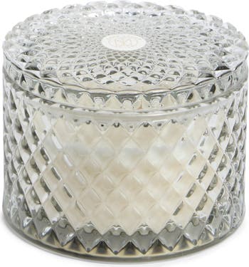 Set the mood with a candle that radiates serene sophistication and is housed in a faceted glass vessel.