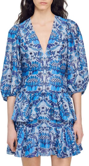 Linen-blend fabrication gives a light and easy-wear feel to a leg-baring dress covered in a bold print that brings boho vibes to your look.