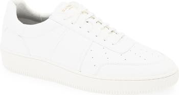 Breathable perforations add sporty appeal to this smooth leather sneaker grounded by a textured rubber sole.