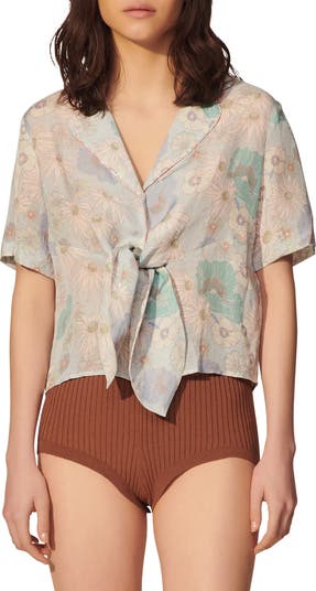 This tie-neck top made of incredibly lightweight fabric in a muted floral print is perfect for any day of the week.