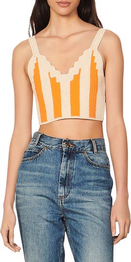 Wide stripes pattern this crochet-inspired tank top that's perfectly cropped.