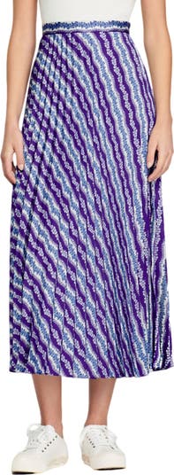 Printed diagonal stripes enliven this A-line skirt designed in allover pleats.