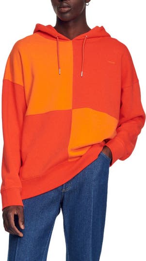 An oversized fit amplifies the street-savvy vibe of this comfortable cotton pullover hoodie boasting a bold colorblock print.