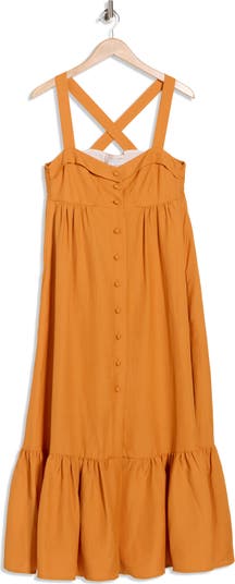A sweetheart neckline and tiered skirt lend romantic appeal to a linen-kissed dress that makes an excellent choice for date nights.