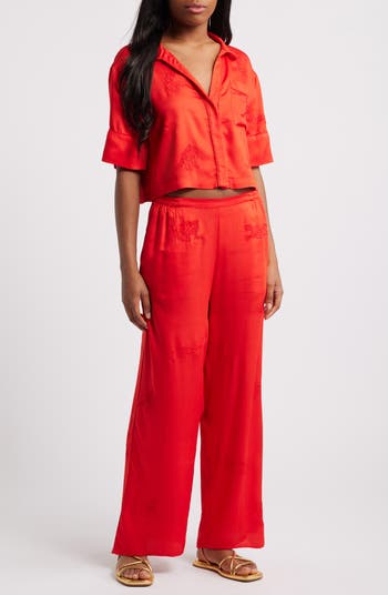 Whether it's a night in or an evening out, this supersoft embroidered lounge set will be a comfortably elegant choice.