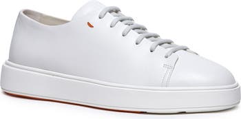 Premium leather and minimalist details create a streamlined profile on an Italian-crafted sneaker done in a low profile for easy, everyday pairing.