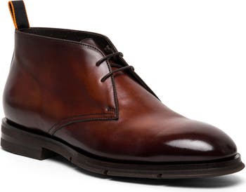 Burnished calfskin leather brings supple shine to this Italian-crafted derby-inspired boot that boasts a rich patina and minimalist lacing.