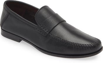 Richly pebbled Italian leather brings texture and distinction to a loafer styled for versatility with a simple bridge strap and a classic moc toe.