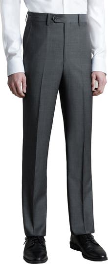 A flat front and crisp creases down the legs bring classic detailing to dress pants tailored from wool herringbone and styled to elevate any formal look.