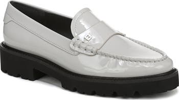 A chunky lugged sole elevates a patent loafer with a utilitarian finishing touch.