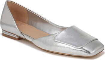 This sleek low-heeled flat elevates a minimalist silhouette with a squared-off toe and half-d'Orsay design fusing timeless style and modern comfort.