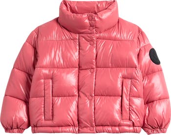 Keep your kid warm in this channel-quilted puffer jacket boasting a cozy stand collar, secure storm placket and handy front pockets.