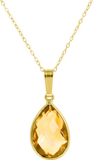 An elegant 18-karat gold-plated sterling silver necklace suspends a pear-cut semiprecious stone pendant for a pretty pop of color.