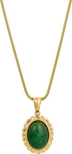 Show off vintage-inspired shine with this bold pendant necklace featuring an oval aventurine cabochon in an elegantly textured frame.