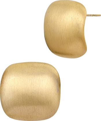 A brushed finish brings eye-catching texture to these statement-making studs done in a cushion-cut silhouette.