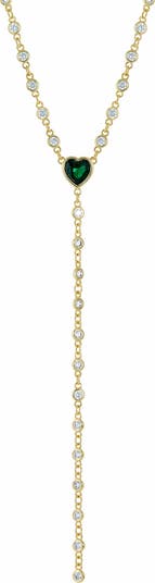 Bezel-set cubic zirconia make a shimmering statement against this polished Y-necklace that pairs perfectly with plunging ensembles.