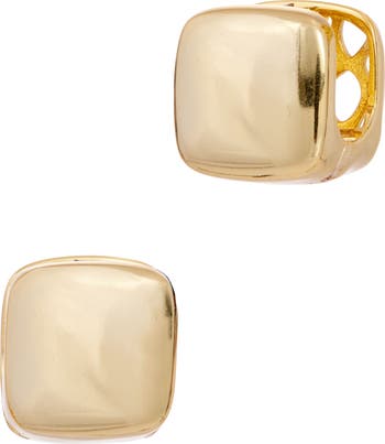 Add a polished touch to your lobes with chunky square huggies plated in gleaming 18-karat gold.