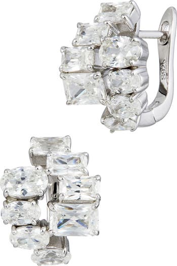 Mixed-cut cubic zirconia clusters illuminate these glamorous lever-back earrings crafted from sterling silver and plated in polished rhodium.