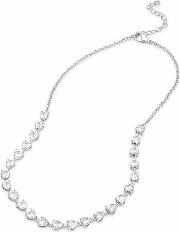 Show off romantic sparkle with this heart-cut cubic zirconia tennis necklace crafted from sterling silver with a high-shine finish.