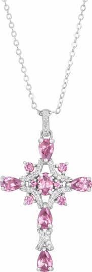Mixed-cut cubic zirconia illuminate this glamorous cross pendant necklace crafted from polished sterling silver.