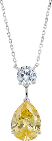 Round and pear-cut cubic zirconia illuminate this glamorous Y-necklace crafted from sterling silver and plated in polished rhodium.