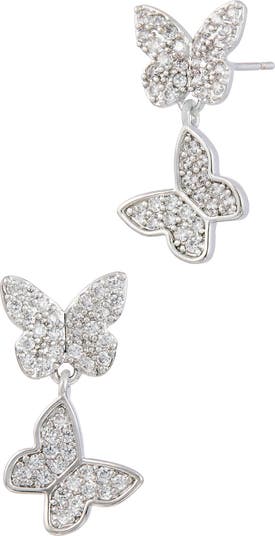 Bring subtle movement to your lobes with these whimsical butterfly drop earrings covered in cubic zirconia pavè.