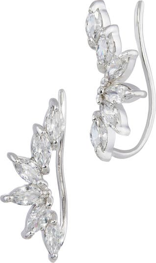 Add statement sparkle to your lobe look with these ear climbers featuring prong-set, flared-pear cubic zirconias.