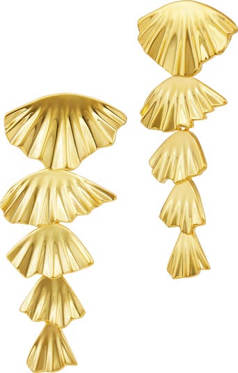 Textured fans catch the light on these graduated drop earrings that bring stunning shine to your looks.