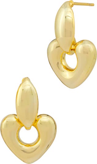 Bring sweet shine to any look with romantic heart doorknocker drop earrings plated in warm 18-karat gold.