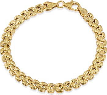 Perfect to stack or wear solo, this textured chain bracelet is crafted in Italy from sterling silver with a glossy goldtone finish for elegant shine.