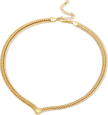 A polished geometric pendant centers a textured mesh chain on this elegant collar necklace that's perfect to stack or show off solo.