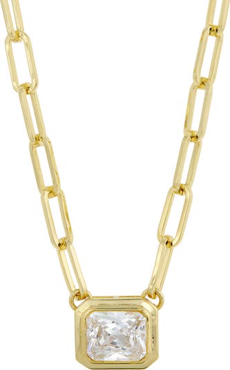 A bezel-set cubic zirconia pendant grounds this elegant chain link necklace for an anytime wear.