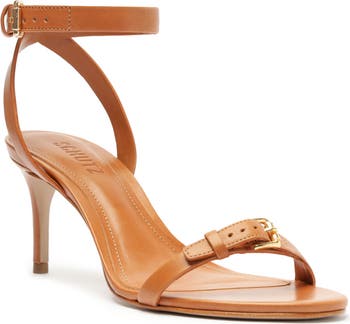 Slender, buckled straps elevate a minimalist sandal fashioned from supple leather and lofted by a tapered heel.