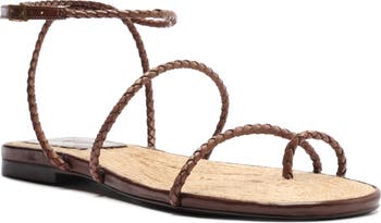 Braided leather straps and a single toe loop add textural intrigue to a Brazilian-made sandal set on a jute-covered footbed and secured with an adjustable buckle closure.