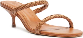 Intricately woven straps lend artisanal character to this otherwise minimalist kitten-heel sandal that pairs well with breezy looks and streamlined styles alike.