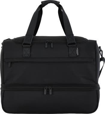 Pack everything you need for your weekend away in this double-compartment duffle bag featuring a spacious, well-organized interior topped with comfortable multi-wear straps and a convenient trolley sleeve.