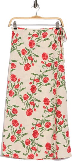 Keep the summertime living easy with this midi wrap skirt made from a lightweight linen blend patterned in a floral print.