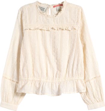 Frilly bits and clipped dots add charm to a top mostly made from crisp cotton.
