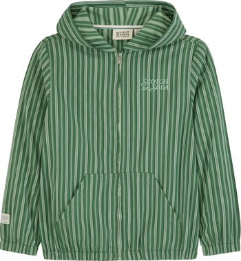 Pure cotton fabrication gives a crisp fit and feel to every wear of a hooded jacket patterned in neat rows of yarn-dyed stripes.