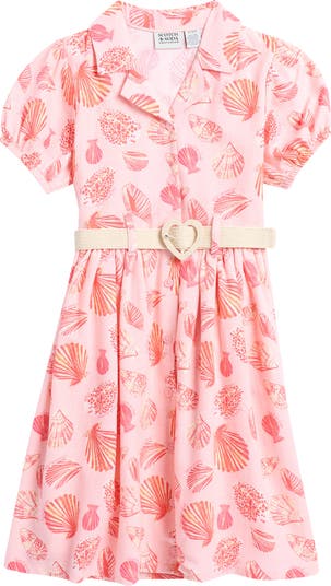 Bring seaside charm to your little one's wardrobe in and out of the resort with this breezy cotton-blend shirtdress sweetened with puffy sleeves and a heart-shaped woven belt.