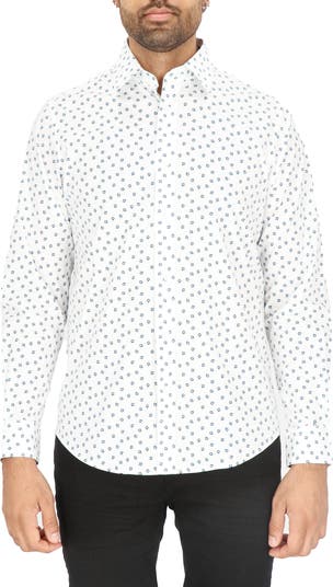Cotton with comfortable stretch distinguishes a modern-fit dress shirt designed in a flower print that's perfect for any casual or semiformal look.